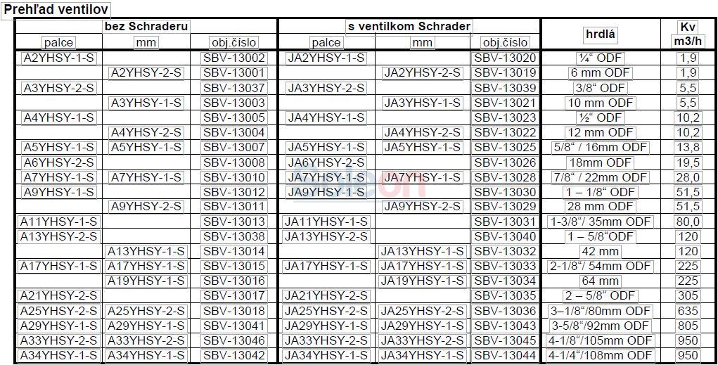 Niektoré veľkosti ventilov rady SBV sú osadené manometrovým ventilčekom (Schrader) pre možnosť merania tlaku chladiva. Ventilček je možné používať i k plneniu zariadení chladivom. Prevedenie chráni ventilok pred poškodením a odstraňuje nutnosť dodatočnej montáže ventilčeku na potrubí. Výber vhodného prevedenia je možný podľa typového označenia.