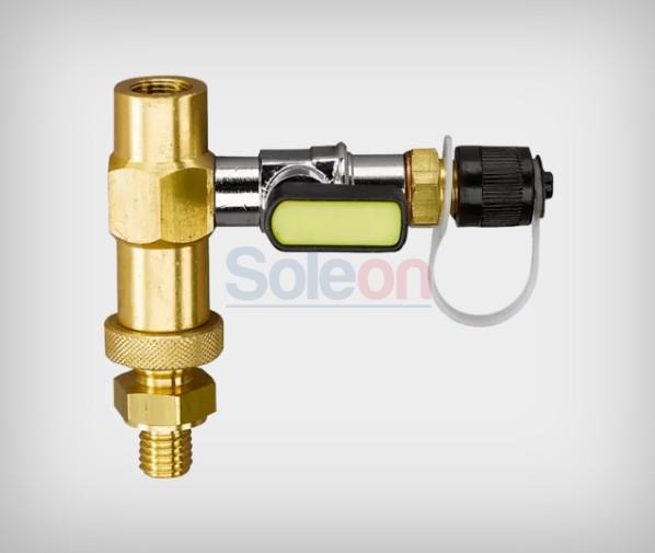 Plniaci adaptér pre fľaše s chladivom na váhach REFCO. Pripojenie: ACME-1/2"-16G, ľavotočivý závit. Pripojenie A 1/4"SAE, pripojenie B 1/2" ACME-LH, pripojenie C M10.